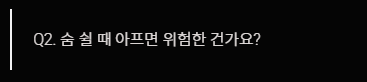 답변: 대부분은 늑간근 근육통일 수 있습니다. 하지만 통증이 심하거나 호흡이 어렵고, 며칠이 지나도 나아지지 않으면 병원 진료가 필요합니다.
