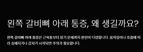 왼쪽 갈비뼈 아래 통증은 근육통부터 소화 문제, 장기 이상까지 다양한 원인으로 발생할 수 있습니다. 대부분은 일시적인 경우가 많지만, 통증의 강도나 지속 시간에 따라 반드시 주의가 필요합니다.특히 통증이 반복되거나 점점 심해진다면 단순한 문제로 넘기지 말고 정확한 원인을 확인하는 것이 중요합니다. 몸이 보내는 작은 신호를 놓치지 않는 것이 건강을 지키는 첫걸음입니다.