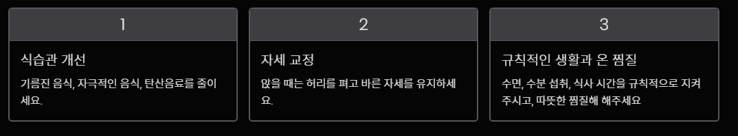 생활 습관을 바꾸는 것만으로도 증상이 좋아질 수 있습니다. 특히 장시간 앉아 있는 습관이나 구부정한 자세는 통증을 악화시킬 수 있으니 주의가 필요합니다.
