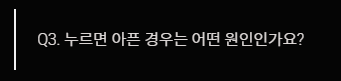 답변: 특정 부위를 눌렀을 때 아프다면 근육이나 늑골 주변 문제일 가능성이 높습니다. 다만 통증이 매우 심하거나 붓기, 멍, 발열이 함께 있으면 진료가 필요합니다.